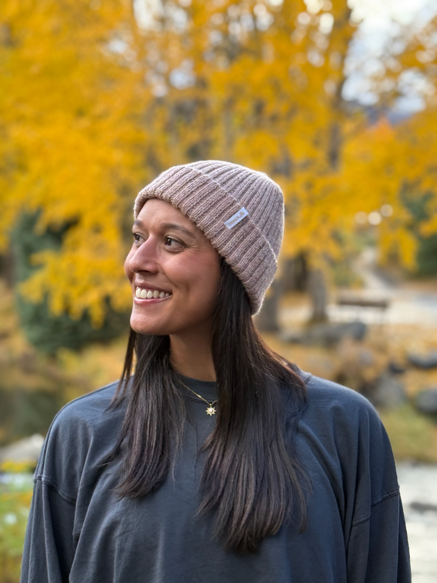 The beautiful Cheyenne in Breckenridge wearing our Rosa beanie in Rose Pink!