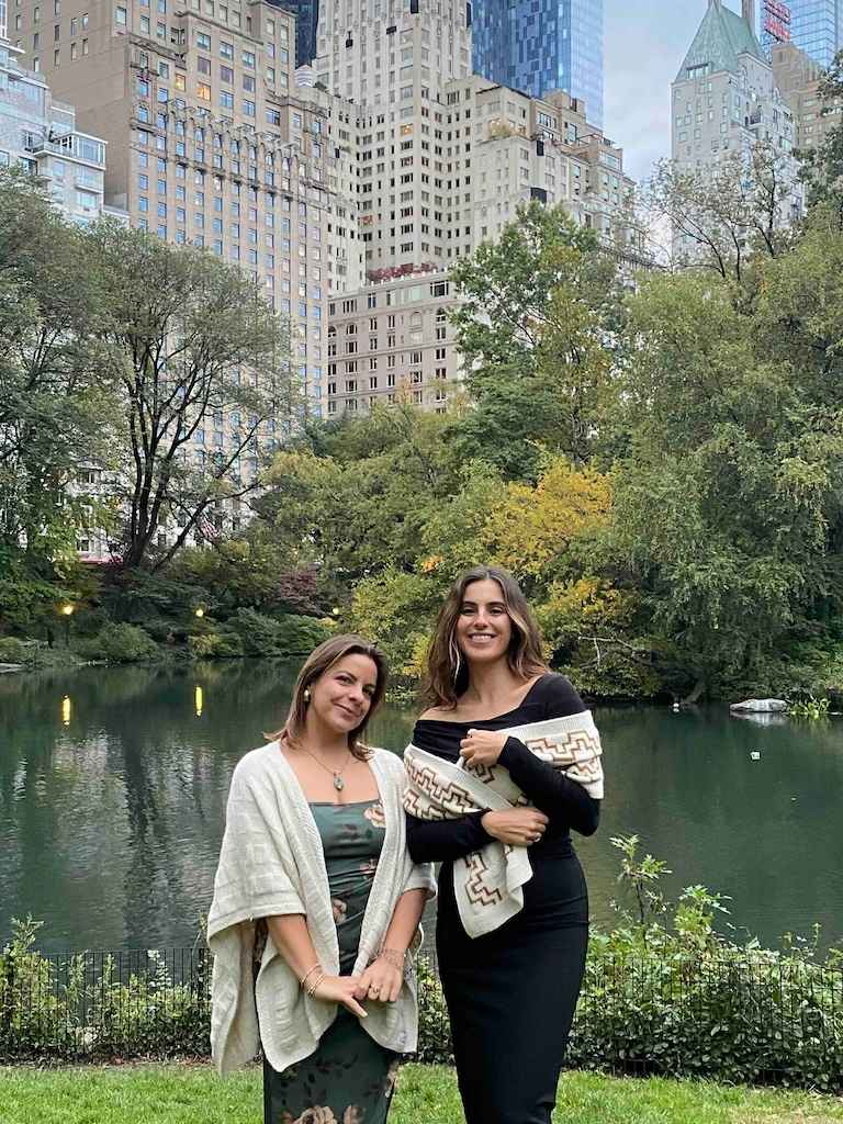 Katie and Tess wearing Chimuk to the HELP Peru Gala