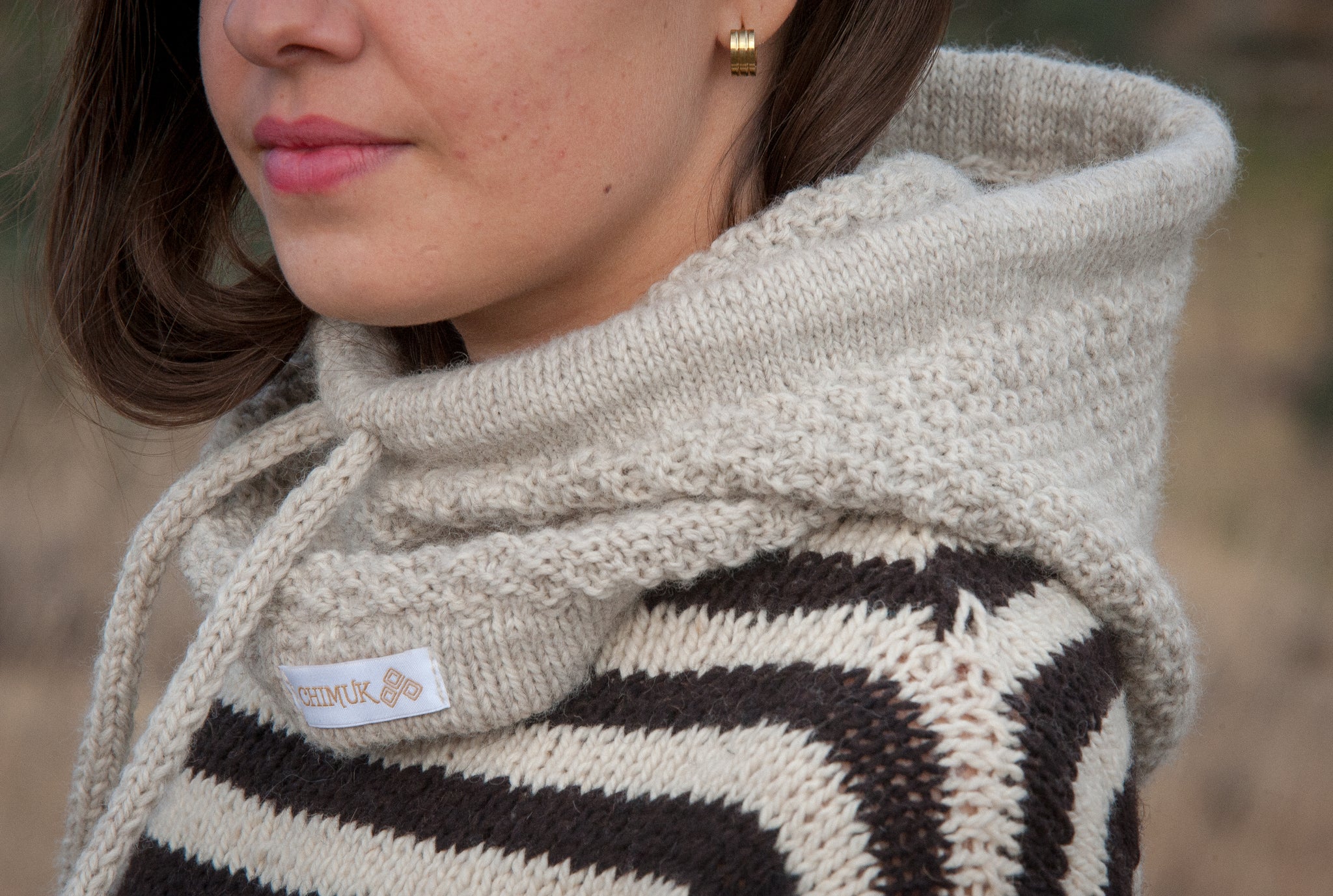 Handmade with 100% natural sheep wool from the Andean highlands of Peru, our knitted hood is the perfect sustainable winter accessory. Soft, warm, and itch-free with an adjustable string, it wraps you in lasting comfort for chilly days and winter strolls.